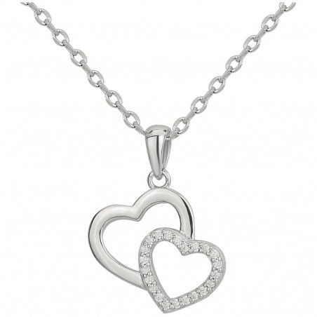 Collier Carador Femme - Argent et Oxydes de zirconium - Doubles Cœurs