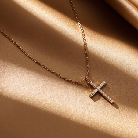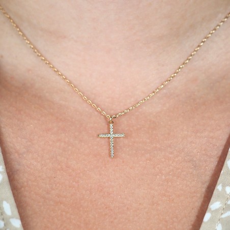 Collier Carador Femme en Plaqué Or et Oxydes de zirconium Motif croix Maille forçat