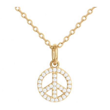 Collier Carador Femme en Plaqué Or et Oxydes de zirconium Motif Peace and Love Maille forçat