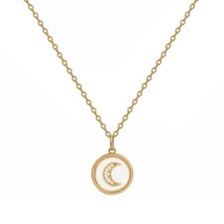 Collier Carador Femme en Plaqué Or plaque blanche Motif lune en oxydes de zirconium