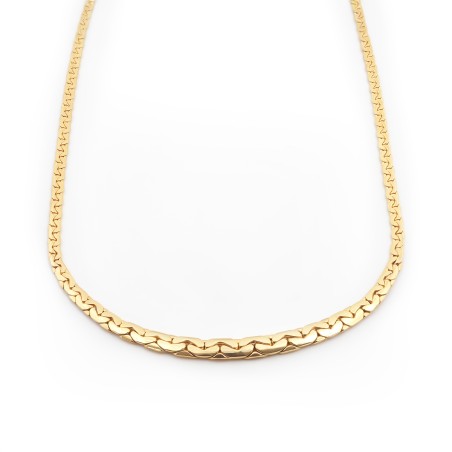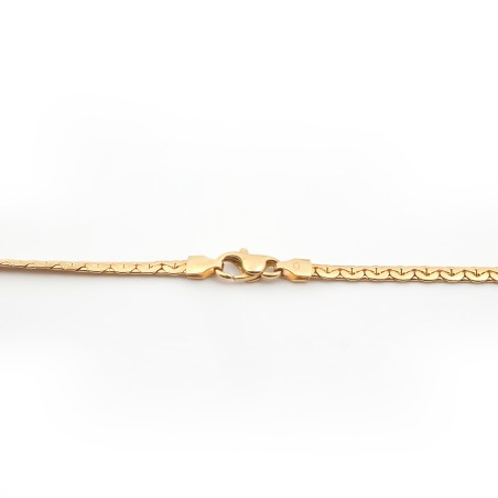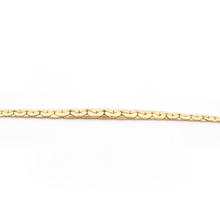 Ce modèle en or 750/000 est en maille haricot de 42 cm et possède une fermeture mousqueton.