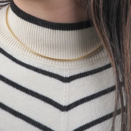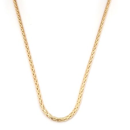 Intemporel collier en or jaune 375/000 (9 carats) en maille palmier de 2 mm. Ce bijou proposé par Carador est un collier incontournable. 42 cm