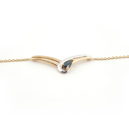 Ce collier très élégant vous est proposé par Carador. En or blanc et jaune 375/000 et avec un saphir il sera un superbe cadeau. Le saphir est une pierre précieuse.