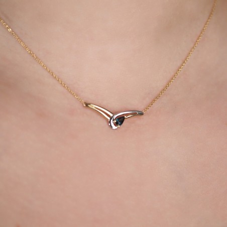 Collier Carador Or jaune et Blanc 375/000 et Saphir
