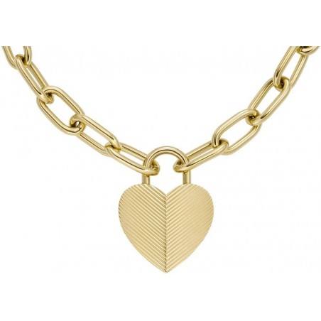 Collier Chaîne coeur Femme Fossil en acier doré