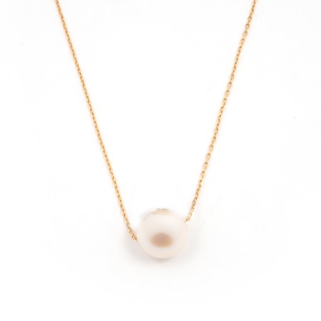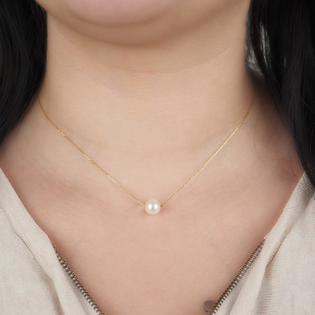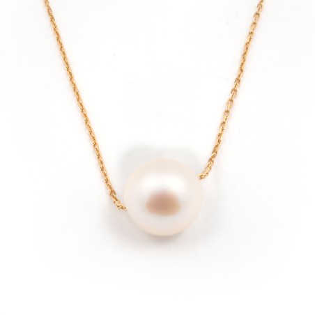 Ce collier est en or jaune 375/000. Une perle de culture d'eau douce est soutenue par une chaine fine en or jaune. Un collier raffiné et féminin à porter au quotidien.
