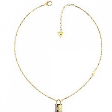Le pendentif cadenas en acier doré serti de cristaux blancs vient sublimer l'ensemble.