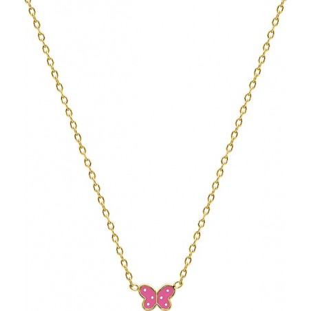 Collier Enfant Carador Plaqué Or - motif papillon laqué rose