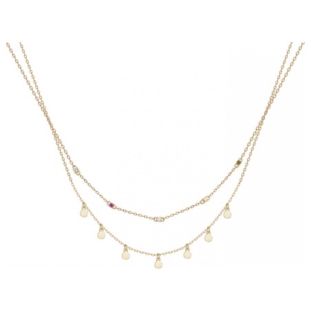 Collier fantaisie doubles chaînes femme carador en plaqué or avec oxydes de zirconium et pampilles suspendues