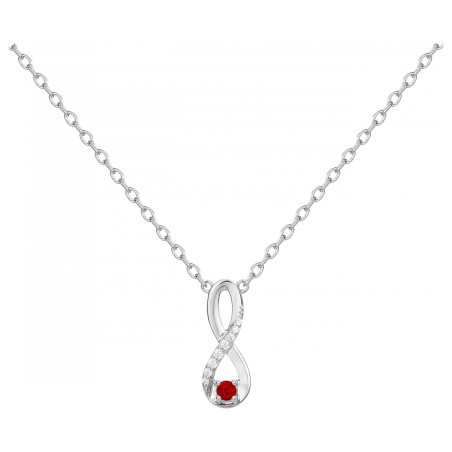 Collier fantaisie femme carador en argent avec oxydes blancs et rouge motif infini