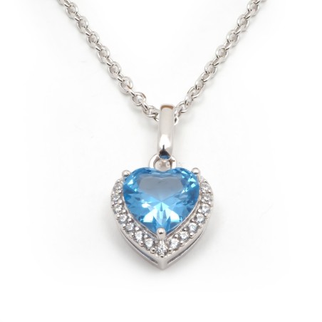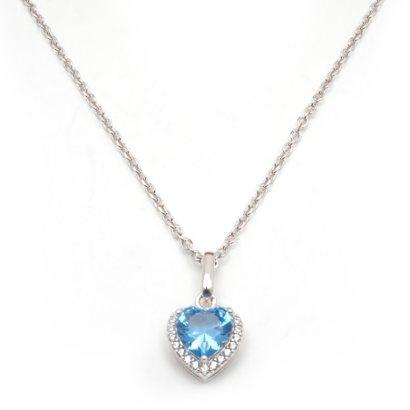 Collier fantaisie femme carador en argent avec oxydes de zirconium blancs et bleu motif cœur