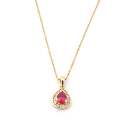 Collier fantaisie femme carador en plaqué or avec oxydes de zirconium et spinelle rouge