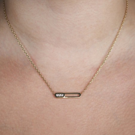 Collier fantaisie femme carador en plaqué or avec oxydes de zirconium style motif trombone