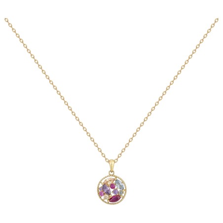 Collier fantaisie femme carador en plaqué or avec un pendentif avec oxydes de zirconium multicolores
