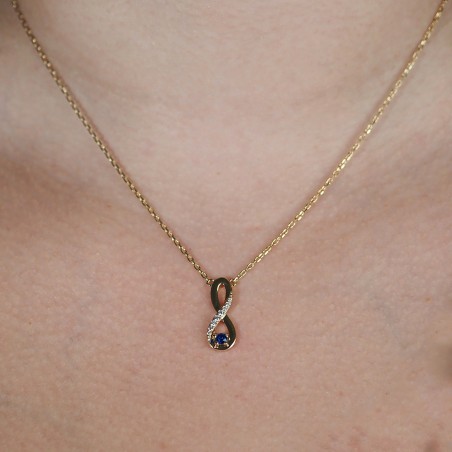 Collier fantaisie signe infini femme carador en plaqué or avec oxydes de zirconium et spinelle bleu
