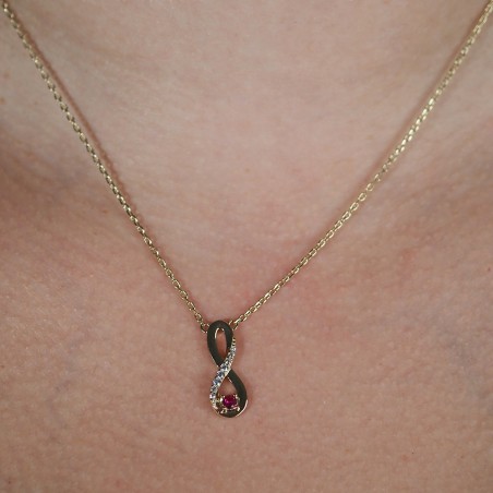 Collier fantaisie signe infini femme carador en plaqué or avec oxydes de zirconium et spinelle rouge