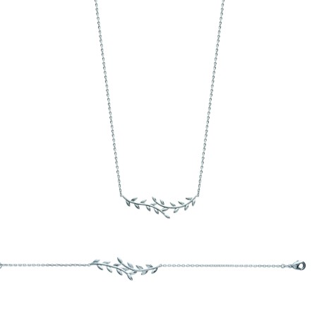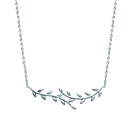 Collier Femme - Carador - Argent rhodié, motif feuille de Laurier