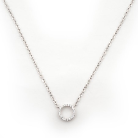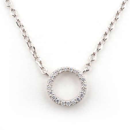 Sa maille forçat supporte un motif cercle en contour entièrement serti d'oxydes de zirconium.
