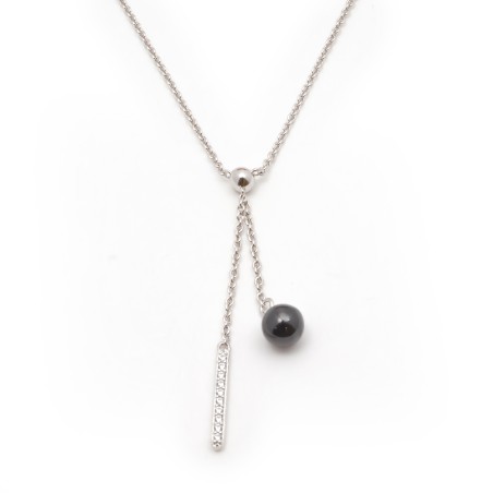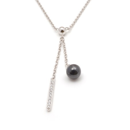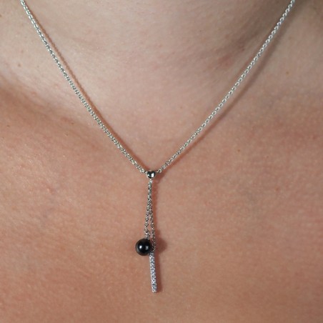 Collier femme carador en argent avec une barrette sertie d'oxydes de zirconium et d'une perle en céramique noire