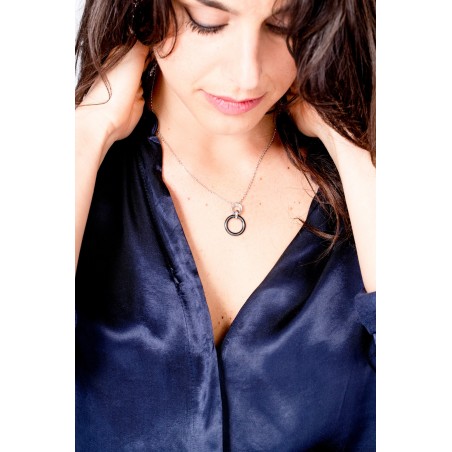 Collier femme carador en argent doubles cercles avec oxydes de zirconium et céramique noire