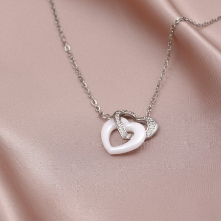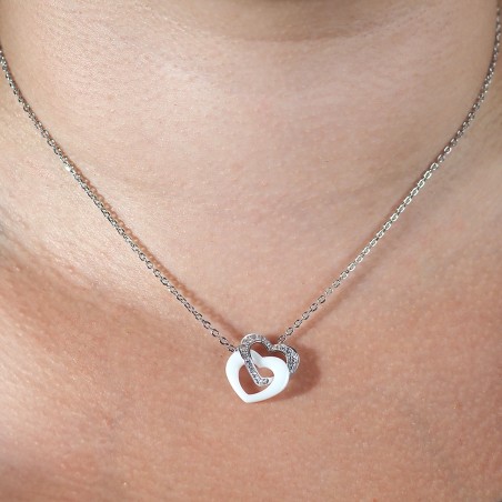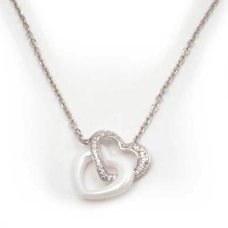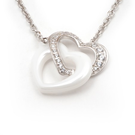 Collier femme carador en argent doubles cœurs avec oxydes de zirconium et céramique blanche