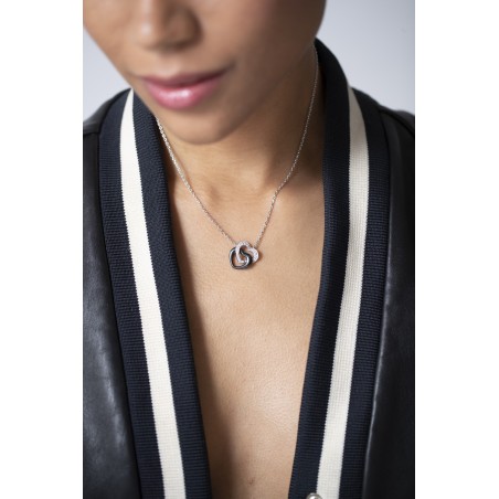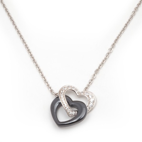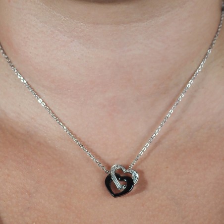 Collier femme carador en argent doubles cœurs avec oxydes de zirconium et céramique noire
