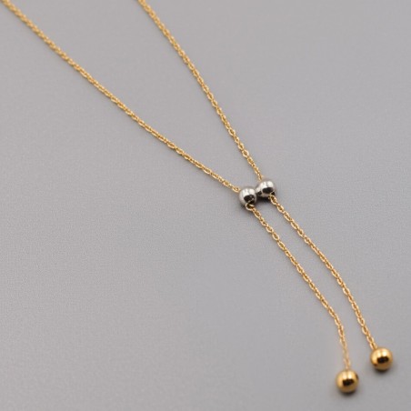 Faisant preuve de simplicité et d'élégance, ce collier Carador illuminera votre décolleté! Bijou issu de la nouvelles collection or 375/000 de votre bijouterie Carador, ce collier affiche une délicate chaine maille forçat et quatre sphères de couleur jaune et blanche. Longueur de la chaine : 42 cm.