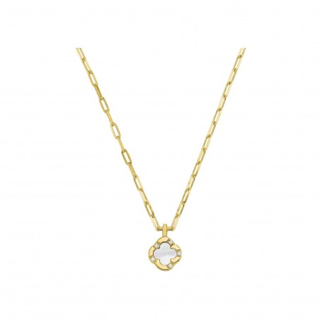 Collier Femme - Charles Garnier - Bijoux LEGENDE - Petit Trèfle En Argent Doré - Oxyde de Zirconium et Nacre Blanche