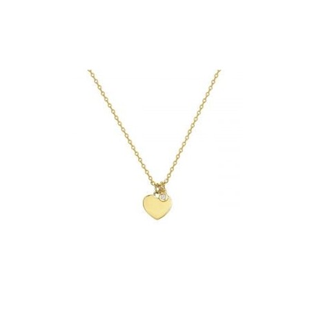 Ce modèle se compose d'une chaine en maille forçat et de deux pendentifs dont un possède une médaille en forme de cœur lisse et un autre est constitué d'une perle en plaqué or serti d'un diamant véritable HSI 0.015 carats.