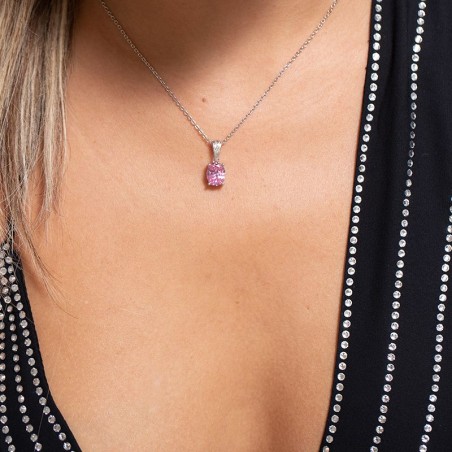 COLLIER FEMME GRIFFE ROUGE ELISABETH ARGENT 925/1000 ET OXYDE ROSE