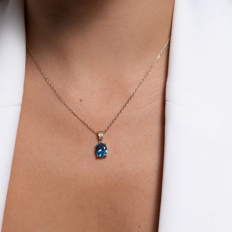 COLLIER FEMME GRIFFE ROUGE ELISABETH PLAQUE OR ET OXYDE BLEU