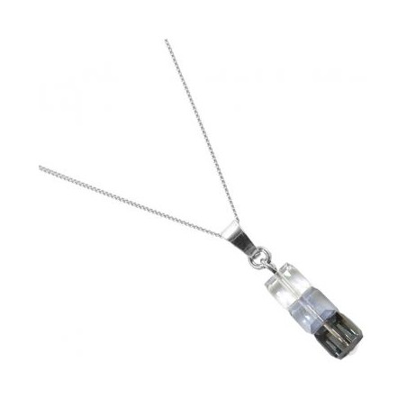 Collier Femme Indicolite Argent 925/000 avec 3 Cristaux carrés gris Maille vénitienne