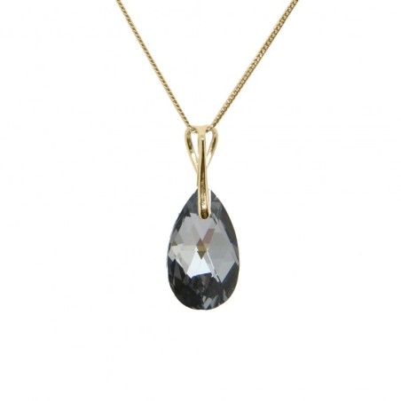 Collier Femme Indicolite solitaire Argent 925/000 doré et Cristal goutte noir Maille vénitienne