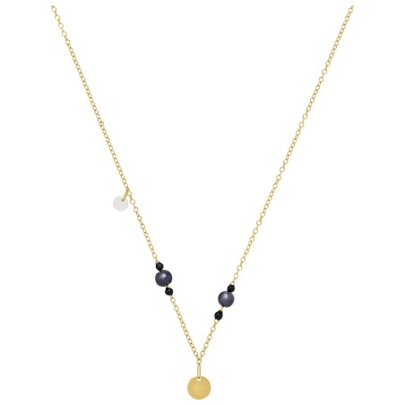 Collier Femme Jourdan en Or 375/000 jaune Pampille dorée et Perles noires Maille forçat