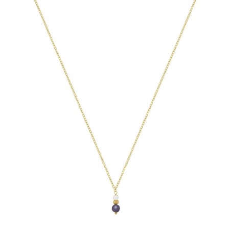 Collier Femme Jourdan Or 375/000 avec 3 Perles blanches dorées et noires Maille forçat