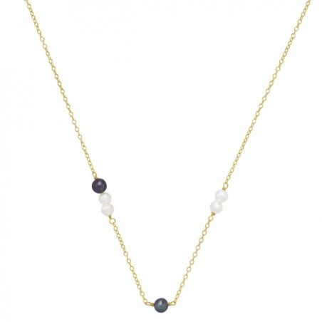 Collier Femme Jourdan Or 375/000 avec Perles blanches et noires Maille forçat