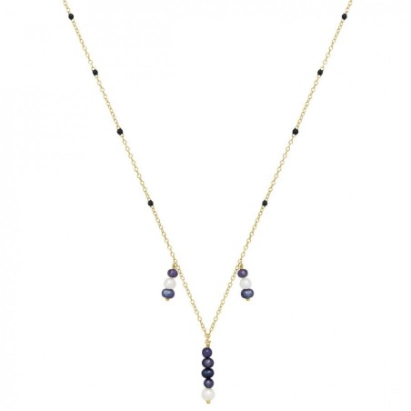 Collier Femme Jourdan Or 375/000 avec Perles noires pendantes Maille forçat