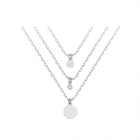 Ce modèle en argent multi-chaine affiche trois rangées de maille forçat avec petit pendentifs dont un, celui du centre, affichant un diamant serti clos.