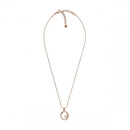 Il est en acier doré rose possédant une chaine de type corde avec un pendentif rond rehaussé d'une perle de couleur blanche en son centre.