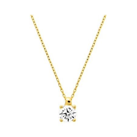 Collier femme solitaire CARADOR en or jaune 750/000 et oxyde de zirconium 4.75mm serti griffes