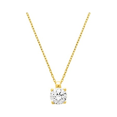 Collier femme solitaire CARADOR en or jaune 750/000 et oxyde de zirconium 5.5mm serti griffes