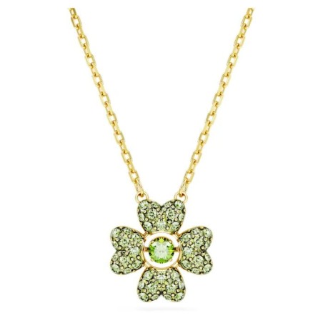 Collier Femme Swarovski Collection Idyllia en métal doré et cristaux verts motif tréfles