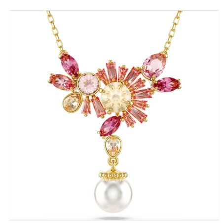 COLLIER FEMME SWAROVSKI GEMA PEARL METAL DORE CRISTAUX ROSE