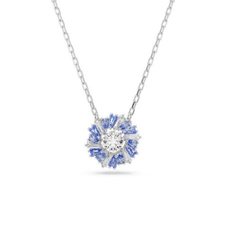 COLLIER FEMME SWAROVSKI IDYLLIA METAL ARGENTE CRISTAUX BLANC ET BLEU