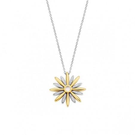 Ce modèle est composé d'ue chaine maille forçat et d'un motif de forme de soleil dont le centre est matérialisé par une pierre de nacre et dont certains "rayons" sont serti d'oxyde de zirconium tandis que les autres sont recouvert d'une sublime couleur or.