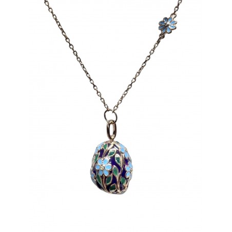 Une chaine classique et intemporelle en maille forçat se terminant par un fermoir mousqueton maintienne un ouvrage délicat de forme ovoïde.
