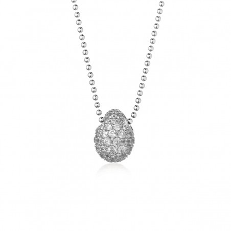 Ce modèle présente une chaine maille marseillaise de 80cm orné un pendentif ovoïde sans bélière, tout incrusté d’oxydes de zirconium.