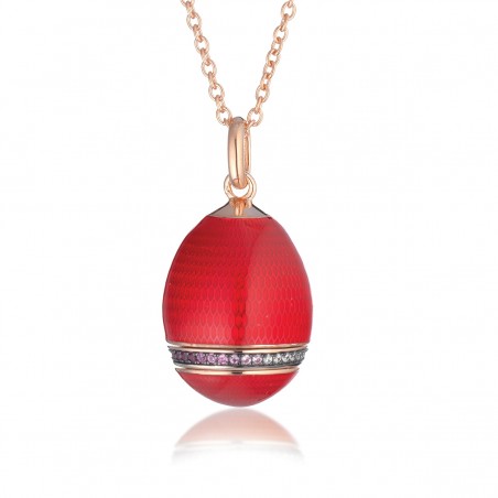 Tout d’émail rouge vêtu ce bijou affiche une fine bande dorée rose incrusté d’oxydes zirconium.