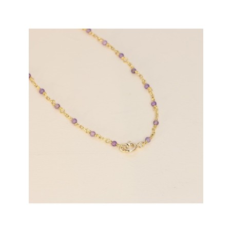Collier Flowers for Zoé Femme Aphaea en acier doré et pierres améthystes violettes