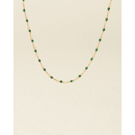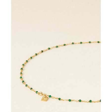 Collier Flowers for Zoé Femme Aphaea en acier doré et pierres jades vertes